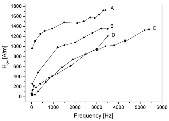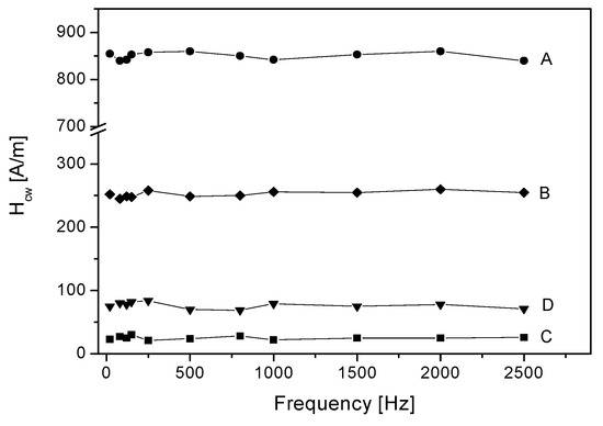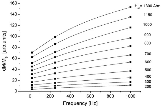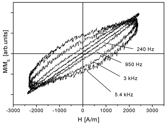 - Vértesy, G.; Magni, A. Frequency dependence of coercive properties. J. Magn. Magn. Mater. 2003, 265/1, 7–12. [Google Scholar] [CrossRef]