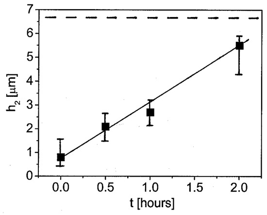 The effect of mechanical stress caused by lattice distortion was measured on LPE magnetic garnet films [79]. It was found that mechanical stress had a significant effect on the uniaxial anisotropy and also on the domain wall parameters. The stress dependence of these parameters was used to modify the magnetic behavior of the same sample [80]. Lattice distortion is due to the different lattice constants of the epitaxial film and of the substrate. Decreasing the thickness of the substrate, the misfit strains in the epitaxial film relax, and the stress-dependent magnetic parameters, like, Hcw, and the Ku uniaxial anisotropy constant, can be modified. In the experiment, the substrates were thinned in several steps from the backside by mechanical polishing. In each step of polishing 100 µm thick layer was removed from the substrate. The magnetic parameters were measured again after each step. It was found that Hcw decreases with decreasing substrate thickness. This is shown in Figure 7. The effect became more emphasized after reaching a 150 µm substrate thickness. Other parameters of the film are not modified by this procedure.
