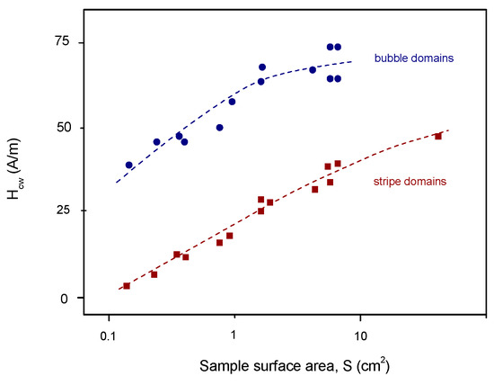 - Vértesy, G.; Pardavi-Horváth, M.; Tomáš, I.; Půst, L. Sample size effect in coercivity measurement of epitaxial magnetic garnet films. J. Appl. Phys. 1988, 63, 1694. [Google Scholar] [CrossRef]