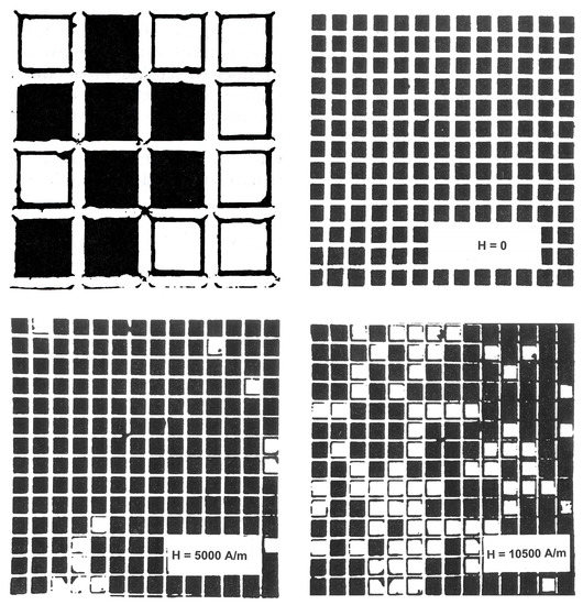 - KIeparski, V.G.; Pintér, I.; Bódis, L. Domain walls formation during nucleation in garnet films. IEEE Trans. Magn. 1984, 20, 1156. [Google Scholar] [CrossRef]