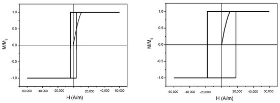 - Della Torre, E.; Perlov, C.M.; Pardavi-Horváth, M. Comparison of coercivity calculations with anisotropy and exchange wells in magneto-optic media. J. Magn. Magn. Mater. 1992, 104–107, 303. [Google Scholar] [CrossRef]
