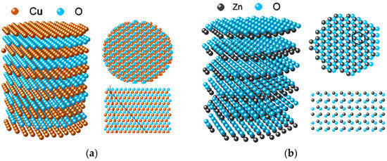 CuO and ZnO lattice parameters utilized for nanowire sample building [,] in Figure 1.