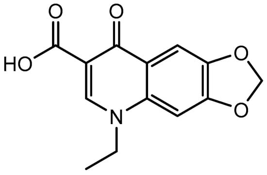 Quinolones have been utilized as antibiotics for over 30 years due to their high potency, good bioavailability, low cost, absence of cross-resistance, and broad-spectrum activity against antibacterial microbes [,,,]. We believe synthesizing new metallodrugs incorporating quinolones can enhance the biological efficiency of these antibiotics. In this study, we aim to provide fresh insights into the behavior and complexation tendencies of oxolinic acid (OA), one of the quinolone antibiotics. OA, with the chemical name 5,8-dihydro-5-ethyl-8-oxo-1,3-dioxolo [4,5-g]quinoline-7-carboxylic acid, belongs to the first generation of quinolone antibiotics (Figure 1). It is a white-to-off-white powder with the linear formula C13H11NO5 (261.23 g/mol). The OA antibiotic was developed by Warner-Lambert, approved by the Food and Drug Administration in the 1970s, and used for treating bacterial urinary infections.