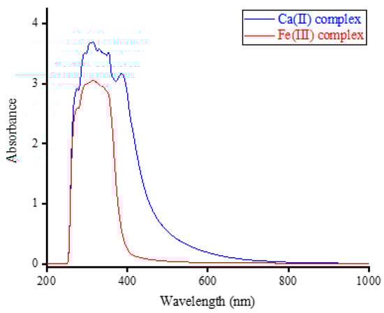 The UV-visible spectra of Ca(II) and Fe(III) complexes.