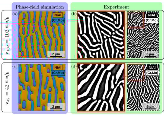 - Kellner, M.; Sprenger, I.; Steinmetz, P.; Hötzer, J.; Nestler, B.; Heilmaier, M. Phase-field simulation of the microstructure evolution in the eutectic NiAl-34Cr system. Comput. Mater. Sci. 2017, 128, 379–387. [Google Scholar] [CrossRef]