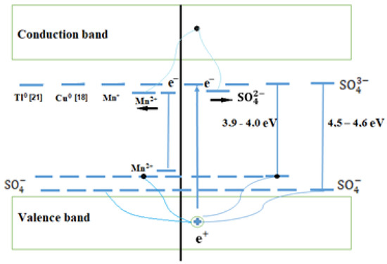 The exhibition of combined states is also characteristic of other alkali metal sulfates activated by Cu+ and Tl+ impurities. We have shown the formation of such states in the band diagram in Figure 8.