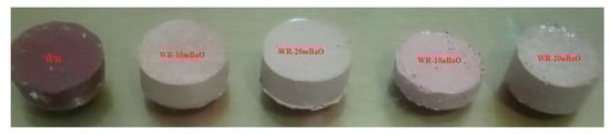 On the other hand, an additional substance that has been researched for its possible use as a radiation-shielding material is waste marble. Radiation-shielding applications could benefit from the utilization of waste marble since, similar to red clay, it is readily available and comparatively cheap. In addition, waste marble is made of minerals that have the ability to protect against the effects of radiation. Research has shown that recycling waste marble by combining it with red clay can produce considerable benefits in terms of reducing waste and reducing the amount of waste produced. The utilization of this method makes it feasible to lessen the impact that production has on the surrounding environment and to realize cleaner production [,]. As a result, it is essential to investigate the possibility of manufacturing a novel shielding material consisting of red clay that has been mixed with waste marble. This method not only lends its support to recycling and waste reduction initiatives, but it also carries the potential to inspire the manufacturing of new environmentally friendly substances that can be put to use in a variety of commercial sectors.