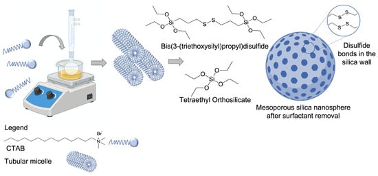 2.2. Synthesis of Mesoporous Silica Nanoparticle (MSN) Embedded with Disulfide Bonds