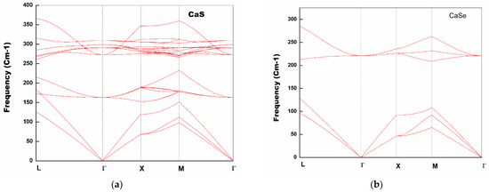 (a): Phonon dispersion curves for CaS and (b) CaSe semiconductor [39].