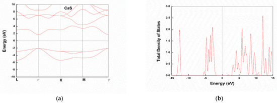 (a) Electronic band structures and (b) total density of states of CaS [22,40].
