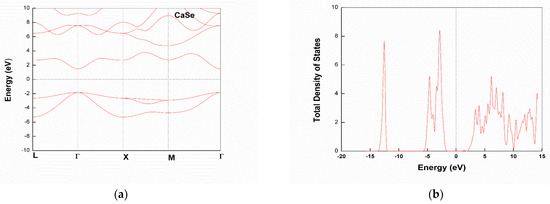 (a) Electronic band structures and (b) total density of states of CaSe [40].