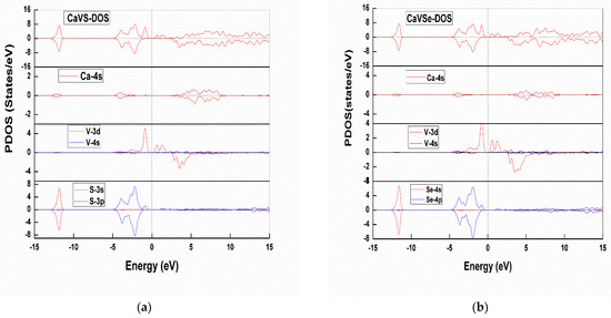 (a) Partial density of states of Ca0.75V0.25S and (b)Ca0.75V0.25Se.