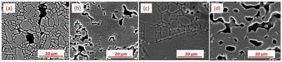 Microstructure images of (a) BTN; (b) BZN; (c) STN; and (d) SZN ceramic samples.