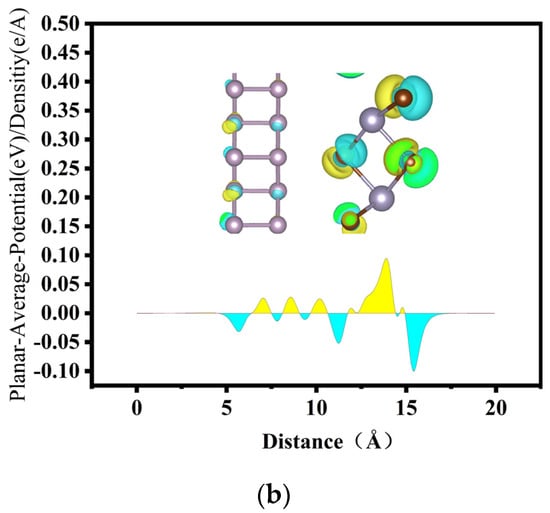 (a) Average electrostatic potential distribution of P/SnBr2 heterojunction in the z-direction; (b) differential electron density of P/SnBr2 along the Z direction.