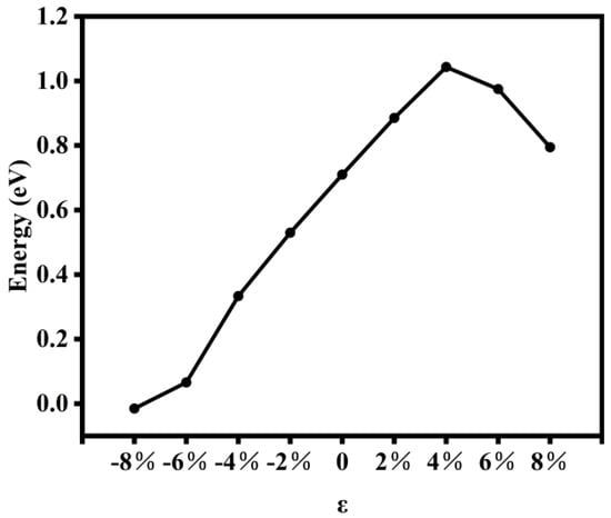 During the formation of heterostructures, strains are difficult to remove due to the influence of external forces or substrates. Meanwhile, mechanical strain has been proved to be an effective method for regulating the electronic properties in 2D applications [44,45]. Therefore, we studied the electronic properties of the P/SnBr2 heterosjunctions under the biaxial strain conditions of −8%~8%.
