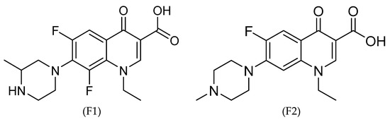 Structures of lomefloxacin (F1) and pefloxacin (F2).