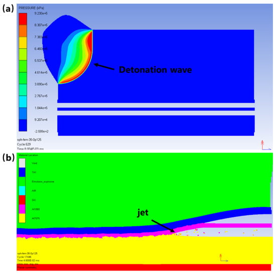 - Zhang, Z.L.; Liu, M.B. Numerical studies on explosive welding with ANFO by using a density adaptive SPH method. J. Manuf. Process. 2019, 41, 208–220. [Google Scholar] [CrossRef]