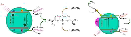 Schematic diagram of the proposed mechanism for the degradation of MB using pure and Ni-doped ZnO nanostructures.