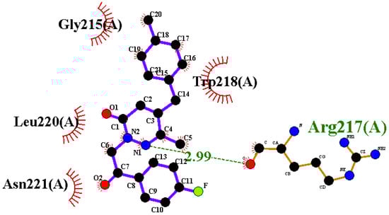 - Wallace, A.C.; Laskowski, R.A.; Thornton, J.M. LIGPLOT: A program to generate schematic diagrams of protein-ligand interactions. Protein Eng. 1995, 8, 127–134. [Google Scholar] [CrossRef] [PubMed]