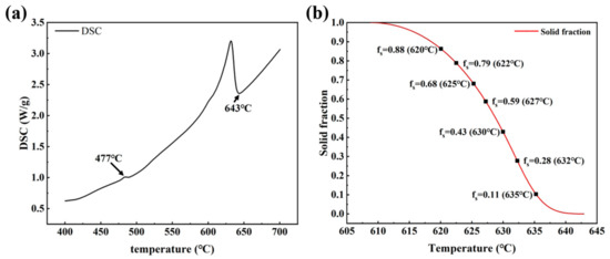 (a) DSC curve; (b) Fraction solid of 7075 alloy.