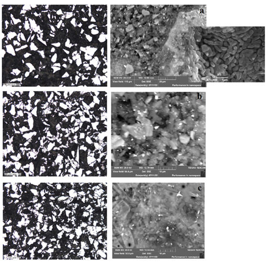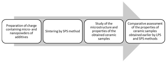 At the same time, despite the obtained results, some issues require further study and clarification. The search for inexpensive oxides for the most complete sintering of SiC will continue in terms of good wetting of silicon carbide by oxide-containing melts. The introduction of such oxides into the composition of the silicon carbide charge leads to a significant decrease in the sintering temperature of ceramics of various compositions, including those containing aluminum oxide. Therefore, it is necessary to clarify the feasibility of introducing such additives in terms of the price–quality level of sintering temperature reduction. In addition, all these further questions will significantly improve the strength and ductile fracture behavior of ceramics.