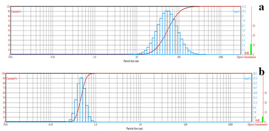 15]. The average size of the main initial component of the SiC powder was determined with Winner-2005A Intelligent Laser Particle Size Analyzer (Jinan Winner Particle Instrument Stock Co., Jinan, China) with measuring range of 0.1–1000 µm. The average particle size of SiC micropowder was 61.576 µm, and SiC nanopowder was 480 nm (