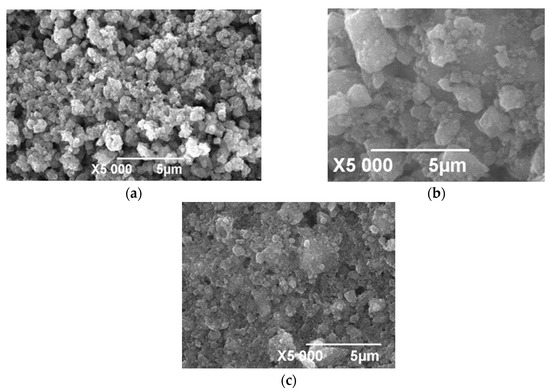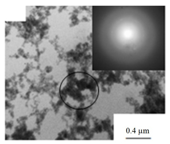 The microstructure and point elemental analysis of the samples were studied on a scanning electron microscope JSM-6390LV (JEOL, Tokyo, Japan) with an energy dispersion analysis add-on unit (EDX) INCA ENERGY (Oxford Instruments, Abingdon, UK) with a high vacuum resolution of up to 3 nm. Electron diffraction patterns of samples were obtained by transmission electron microscopy (TEM) on JEM-2100 (JEOL, Tokyo, Japan). Powder samples for TEM were applied to a grid of amorphous carbon.