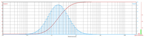 In the charge, as well as in the initial raw materials, it is important to control the size component of the finely dispersed system. Particle size distribution for S1 sample is presented in