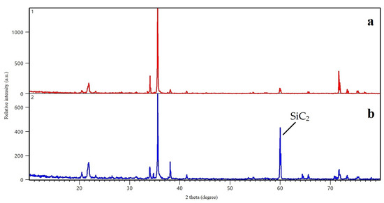 2 phase in certain ratios, which directly depend on the temperature. The intensity of the main lines of SiC decreases, and peaks of SiC