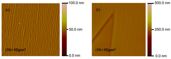 Figure 8 presents atomic force microscopy (AFM) images of the epitaxial layer in sample 2. Specifically,