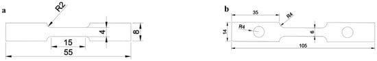 Shape and size of tensile specimens: (a) at room temperature, (b) at high temperature.