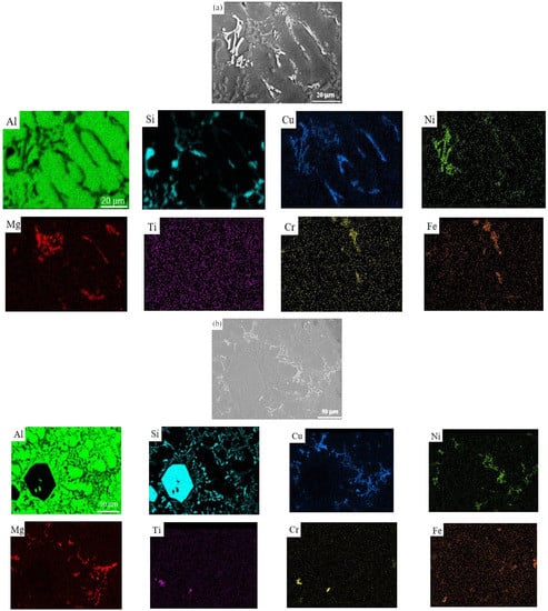 - Li, Y.; Yang, Y.; Wu, Y.; Wei, Z.; Liu, X. Supportive strengthening role of Cr-rich phase on Al-Si multicomponent piston alloy at elevated temperature. Mater. Sci. Eng. A 2011, 528, 4427–4430. [Google Scholar] [CrossRef]