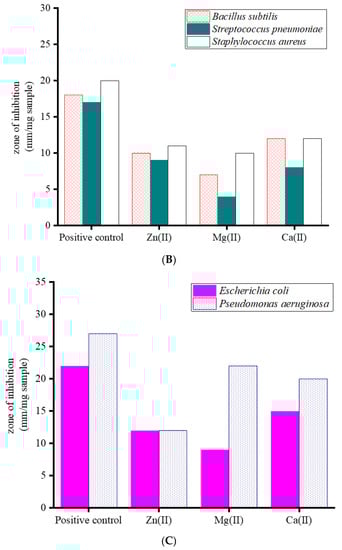 Almehizia, A.A.; Naglah, A.M.; Al-Omar, M.A.; Bhat, M.A.; Alanazi, F.S.; Alotaibi, F.A.; Al-Wasidi, A.S.; Refat, M.S.; Adam, A.M.A. Spectral Characterization and Antimicrobial Activity of Chenodeoxycholic Acid Complexes with Zn(II), Mg(II), and Ca(II) Ions. Crystals 2023, 13, 1166. https://doi.org/10.3390/cryst13081166