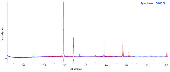 - McCauley, R.A. Structural Characteristics of Pyrochlore Formation. J. Appl. Phys. 1980, 51, 290–294. [Google Scholar] [CrossRef]