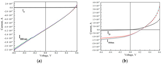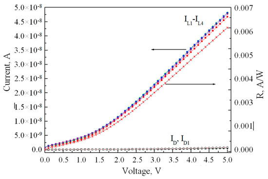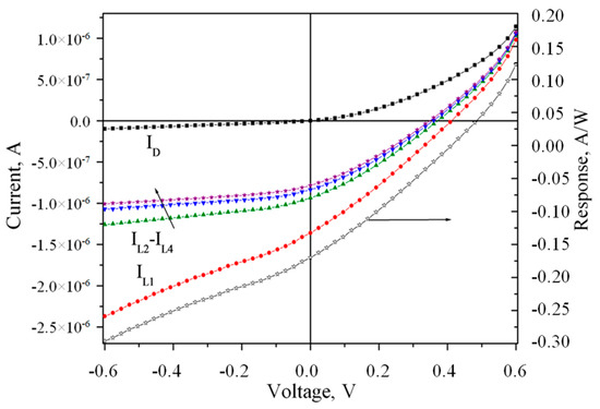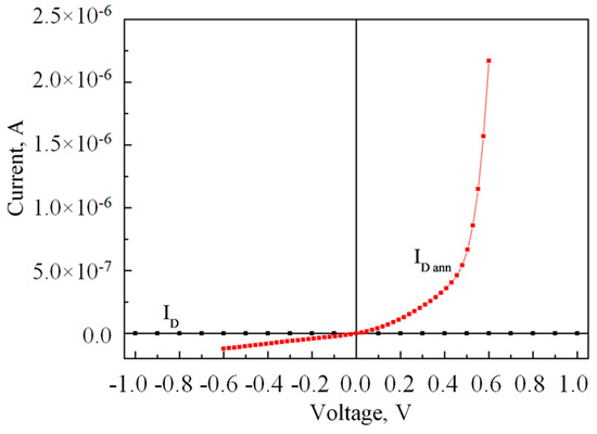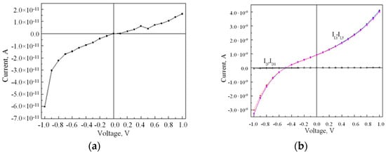 4.1. Electrical and Photoelectric Characteristics of Structures without Annealing