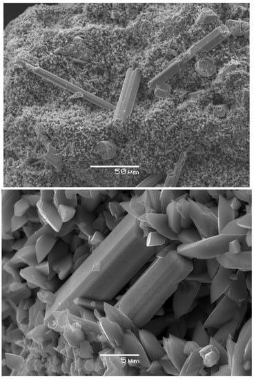 - Vasil’ev, V.I.; Usova, L.V.; Pal’chik, N.A. Grechishchevite—Hg3S2(Br,Cl,I)2—A new supergene mercury sulfohalide. Geol. Geofiz. 1989, 30, 61–69. (In Russian) [Google Scholar]
