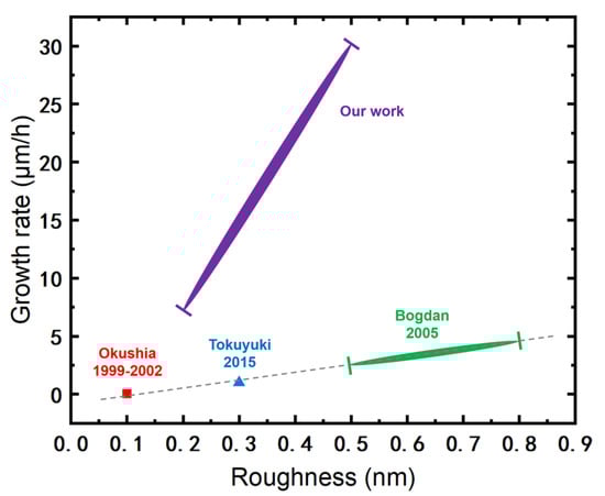 The roughness and the growth rate of the flat diamond epitaxial layer [6,12,18,19,20,21].