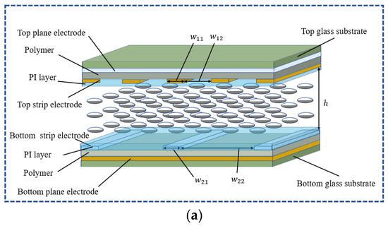 - Gu, L.; Chen, X.; Jiang, W.; Howley, B.; Chen, R.T. Fringing-field minimization in liquid-crystal-based high-resolution switchable gratings. Appl. Phys. Lett. 2005, 87, 201106. [Google Scholar] [CrossRef]