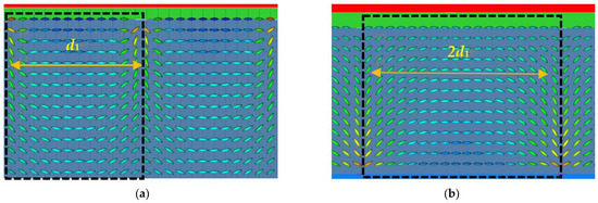 - Li, J.-N.; Hu, X.-K.; Wei, B.-Y.; Wu, Z.-J.; Ge, S.-J.; Ji, W.; Hu, W.; Lu, Y.-Q. Simulation and optimization of liquid crystal gratings with alternate twisted nematic and planar aligned regions. Appl. Opt. 2014, 53, E14–E18. [Google Scholar] [CrossRef]