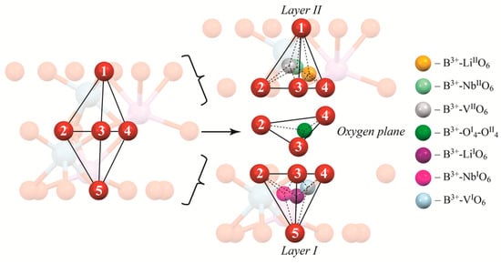 6 face of the vacant tetrahedral void of the LN:B(1) crystal obtained via homogeneous doping, as shown in