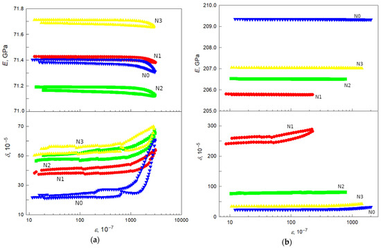- Nikanorov, S.P.; Kardashev, B.K. Elasticity and Dislocation Inelasticity of Crystals; Nauka: Moscow, Russia, 1985; 256p. (In Russian) [Google Scholar]