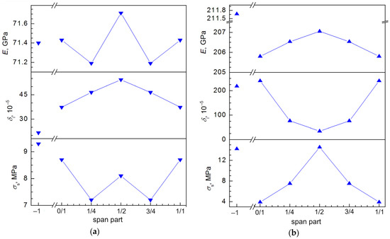 The changes in all characteristics of the structural, microstructural, and elastic–microplastic properties of the aluminum and steel wires along the span parts are described, at least in the first approximation, by means of a V- and M-shaped or antiphase Λ- and W-shaped functions. The stabilizing role of the steel wire is evidenced by a mostly smaller difference between the maximum and minimum values of the functions due to greater rigidity of the steel wire material.