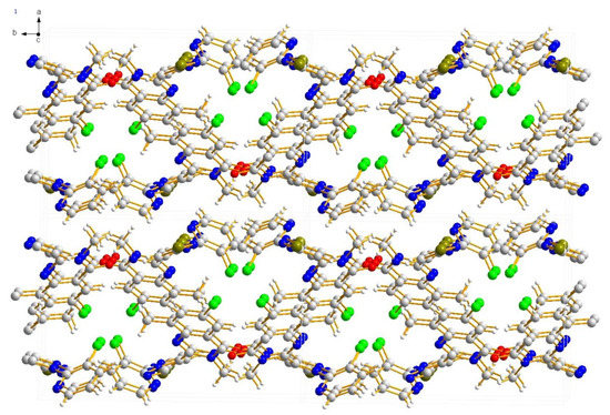 Compound 2a crystallizes in the monoclinic space group P 21/c. In the molecule of 2a (Figure 1), bond lengths and angles are very similar to those given in the literature for chalcone derivatives [19]. The part of quinazoline was approximately planar. The dihedral angles of the C2-C7 phenyl plane, the pyrazole ring, and the pyridine ring plane were 39.728(85)°, 63.024(90)° and 56.700(76)°, respectively. Compound 2a forms a three-dimensional structure by π–π stacking (Figure 2).