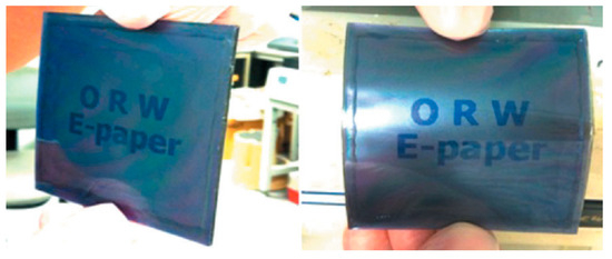 - Kudreyko, A.; Chigrinov, V. Structural and Optical Characteristics of Flexible Optically Rewritable Electronic Paper. Crystals 2022, 12, 1149. [Google Scholar] [CrossRef]