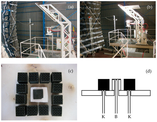 Temperature measurements were carried out by a B-type thermocouple placed underneath a flat Black Zirconia plate placed in the middle of the sample holder (control temperature, Figure 5c), together with eight K-type thermocouples placed in touch with the bottom surface of the exposed samples (Figure 5d).
