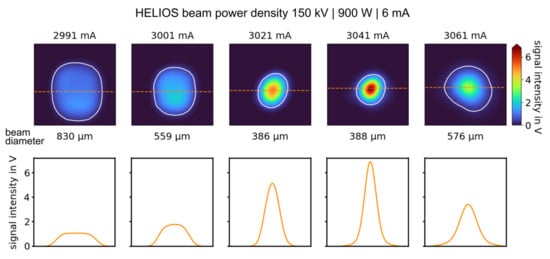 - Reith, M.; Breuning, C.; Franke, M.; Körner, C. Impact of the Power-Dependent Beam Diameter during Electron Beam Additive Manufacturing: A Case Study with γ-TiAl. Appl. Sci. 2022, 12, 11300. [Google Scholar] [CrossRef]