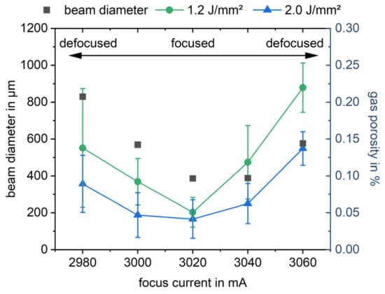 4.1. Influence of Area Energy and Focusing of the Electron Beam