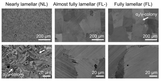 - Knörlein, J.; Franke, M.M.; Schloffer, M.; Berger, T.; Körner, C. Microstructure and mechanical properties of additively manufactured γ-TiAl with dual microstructure. Intermetallics 2023, 161, 107978. [Google Scholar] [CrossRef]