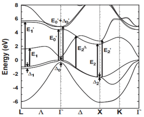 where λ is the wavelength of light in vacuum. The real and imaginary parts of the dielectric function of materials are also associated with the Kramers–Krönig relations via the critical point (CP) energies of their electronic energy-band structures [38]