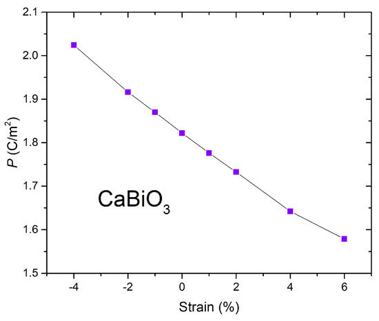 Spontaneous polarization as a function of the in-plane strain for non-perovskite CaBiO3.